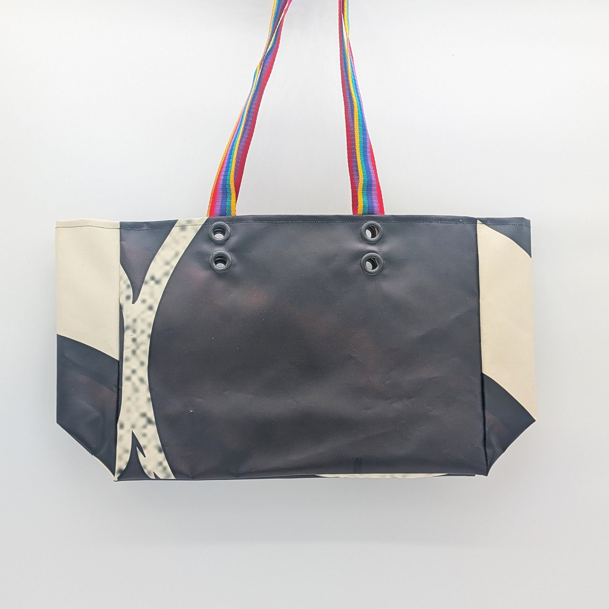 Robust, stylisch und farbenfroh. Die ShoppingBäg ist nicht nur ein echter Hingucker, sondern auch ein echtes Statement für Nachhaltigkeit. Anstatt in der Mülltonne zu landen, bekommen aussortierte Werbe- und Bauzaunbanner bei uns ein neues Leben und einen neuen Look. Das Material ist Wasserfest und sehr widerstandsfähig. So überzeugt die praktische Tasche auch durch ihre hohe Belastbarkeit. Die breiten Tragegriffe sorgen zudem für angenehmen Tragekomfort und durch die großzügige Öffnung lässt sich alles leicht ein- und auspacken.